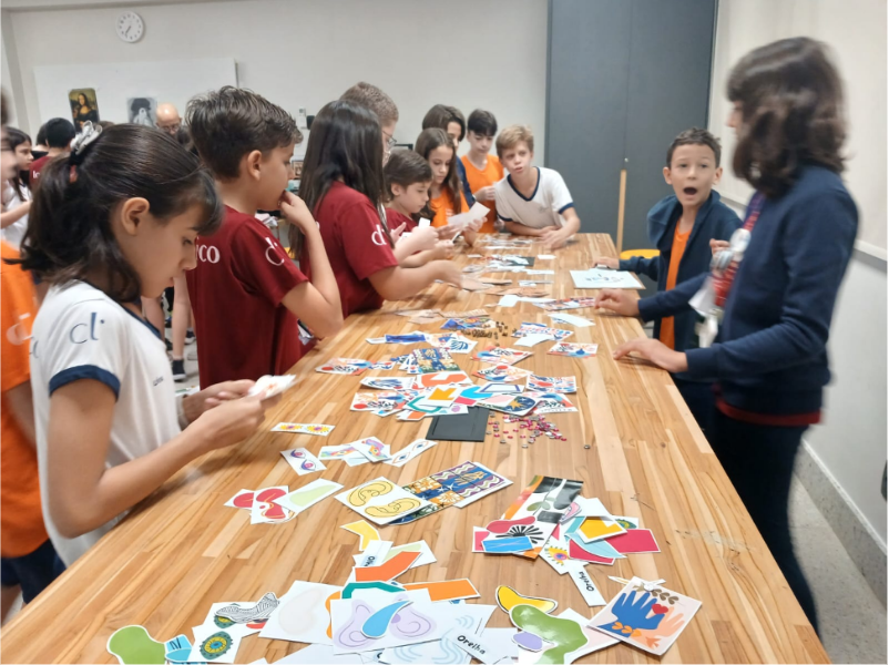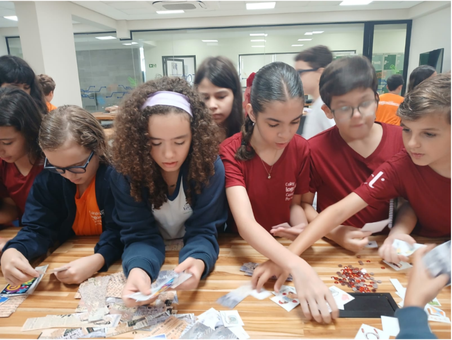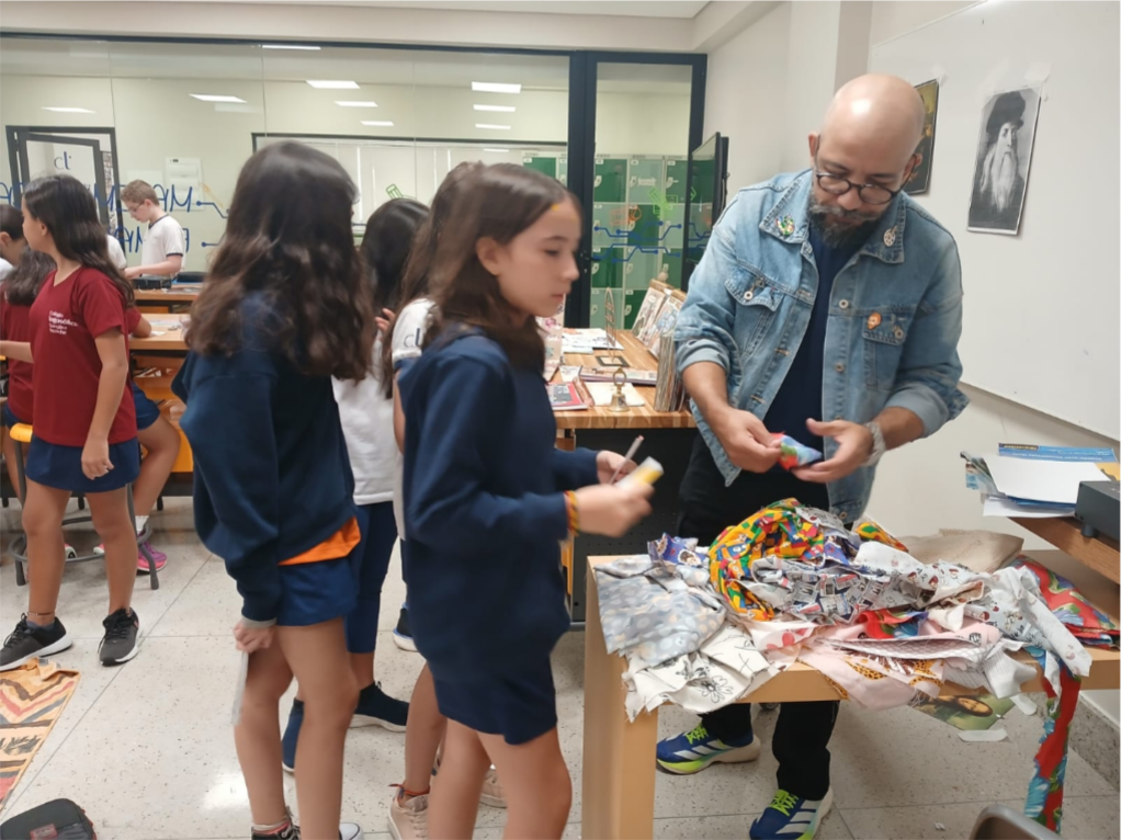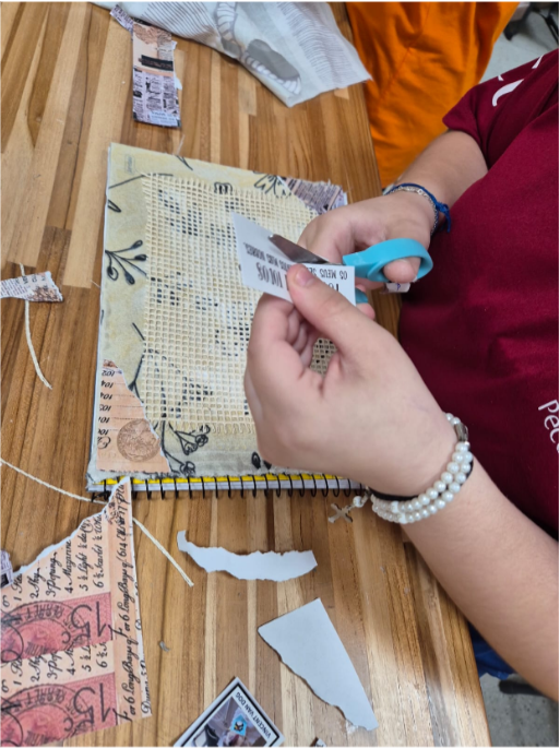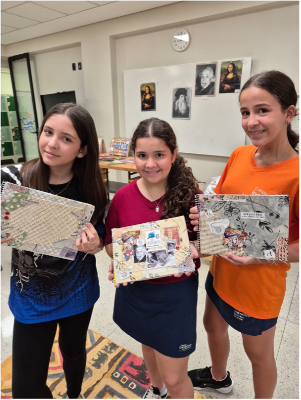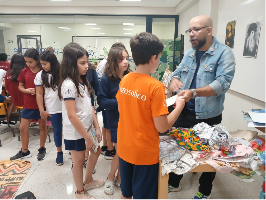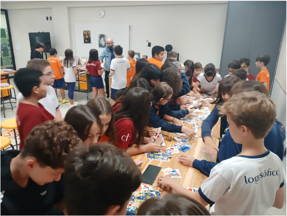 A proposta convidou os estudantes a criarem suas próprias capas utilizando diferentes materiais artísticos, como papéis coloridos, adesivos, tecidos e tintas, estimulando a criatividade e a autoexpressão. No 6º ano, a atividade foi desenvolvida a partir do tema “Caçadores de Arte: Linguagens artísticas como força para o bem”, incentivando a investigação sobre como a arte pode atuar como um instrumento de transformação positiva. Já no 7º ano, com o tema “Ver, sentir e agir: forças do bem na fotografia e no cinema”, os alunos foram conduzidos a refletir sobre o papel das imagens na formação de pensamentos e atitudes.
